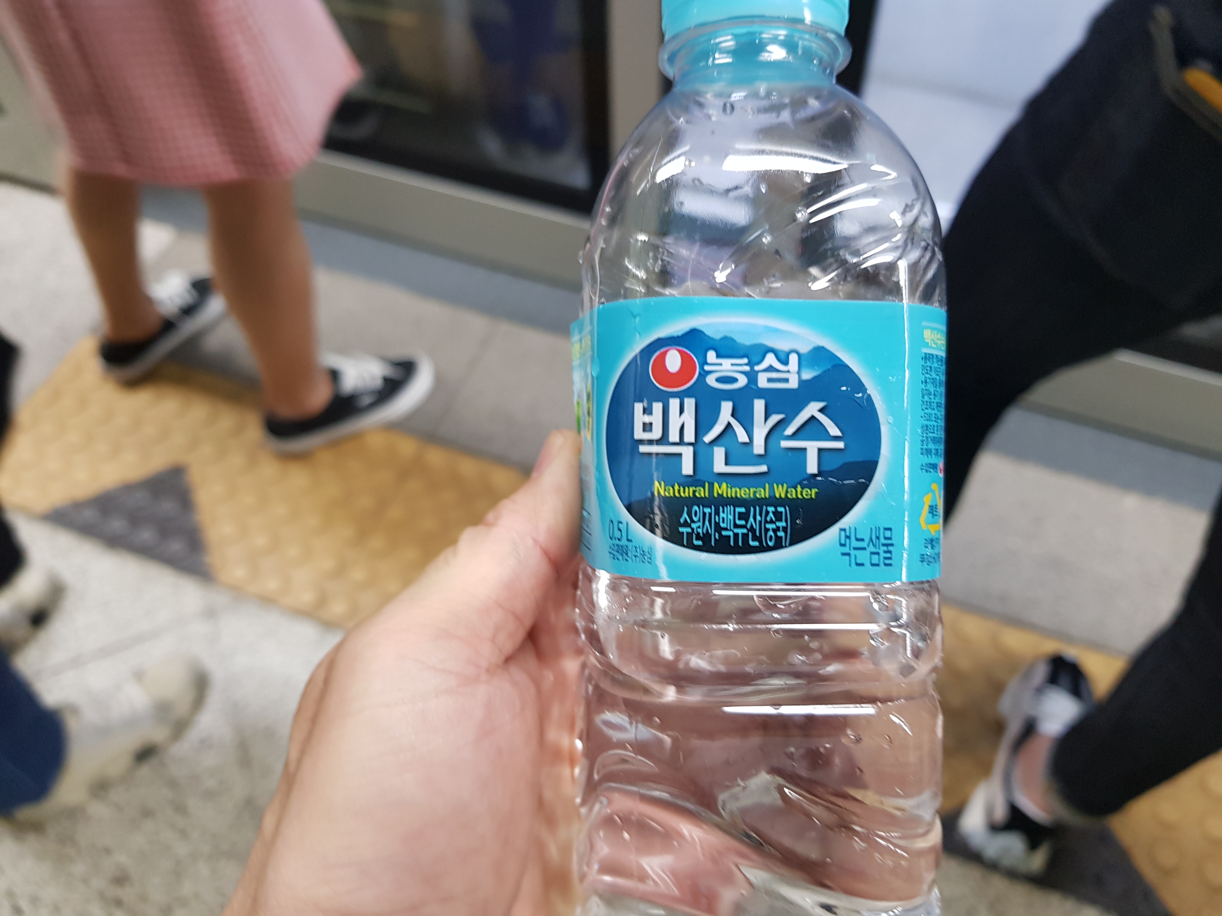 출근 길, 운동하면서 물 250ml 섭취, 지하철 하차하면 나머지 물 소진예정입니다.