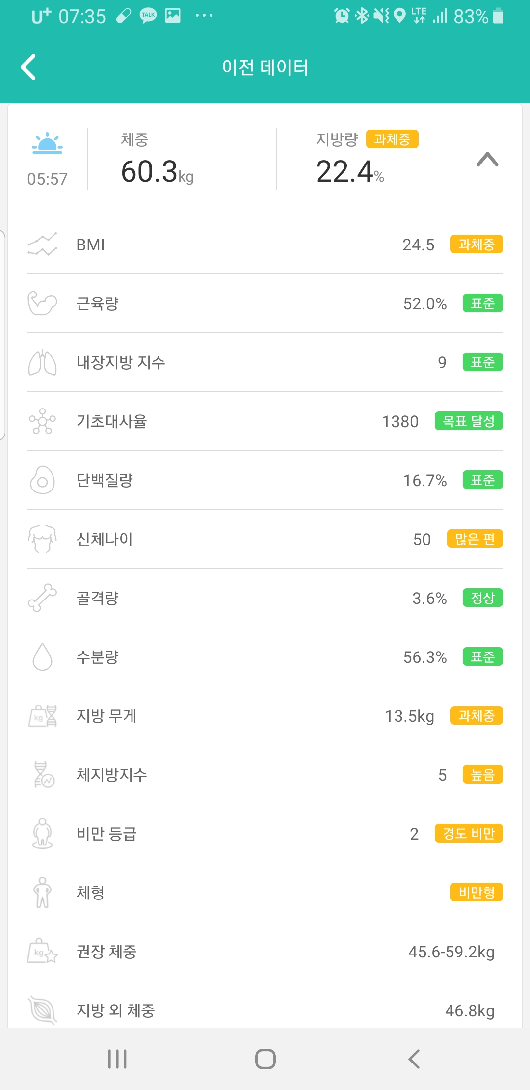 기상후 체중계로 고고, 어제 2리터 이상 물 섭취로 체중의 변화가 있는듯, 상승하였습니다 (ㅋㅋ 라고 믿고 싶습니다).